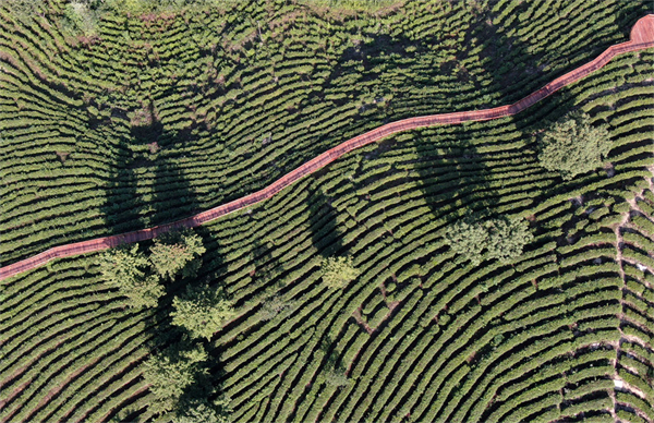 這是6月14日拍攝的陜西省平利縣老縣鎮(zhèn)蔣家坪茶園(無人機照片)。新華社記者 李一博 攝
