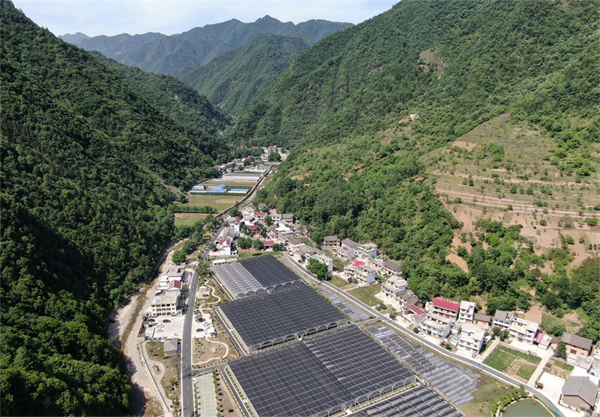 5月30日拍攝的陜西省商洛市柞水縣金米村的木耳大棚(無人機照片)。新華社記者 李一博 攝