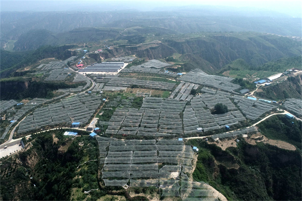 2020年7月29日拍攝的陜西省延安市延川縣梁家河村山地蘋果園(無人機照片)。新華社記者 張博文 攝
