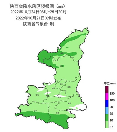 10月21日下午,陜西省氣象局發(fā)布重大氣象信息專報(bào),24-25日我省大部有小雨,并伴有4—6降溫,月底前,仍有一次弱降水降溫和吹風(fēng)天氣。