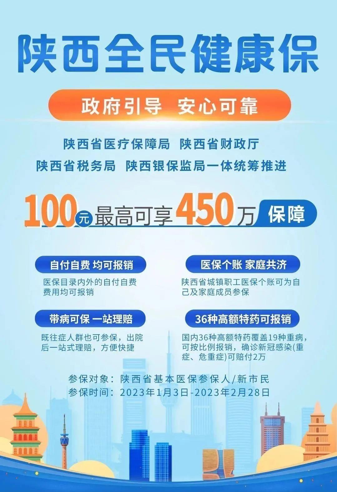為了緩解陜西人民就醫(yī)壓力,1月3日,由陜西省醫(yī)療保障局、陜西省財(cái)政廳、國(guó)家稅務(wù)總局陜西省稅務(wù)局、陜西銀保監(jiān)局指導(dǎo)的,陜西省首款政府引導(dǎo)開(kāi)展的全民補(bǔ)充商業(yè)醫(yī)療保險(xiǎn)項(xiàng)目——陜西“全民健康保”正式上線。投保人每人每年100元,不僅能報(bào)銷醫(yī)保外的自費(fèi)費(fèi)用,而且重大既往癥可買可賠,最高可享450萬(wàn)健康保障。