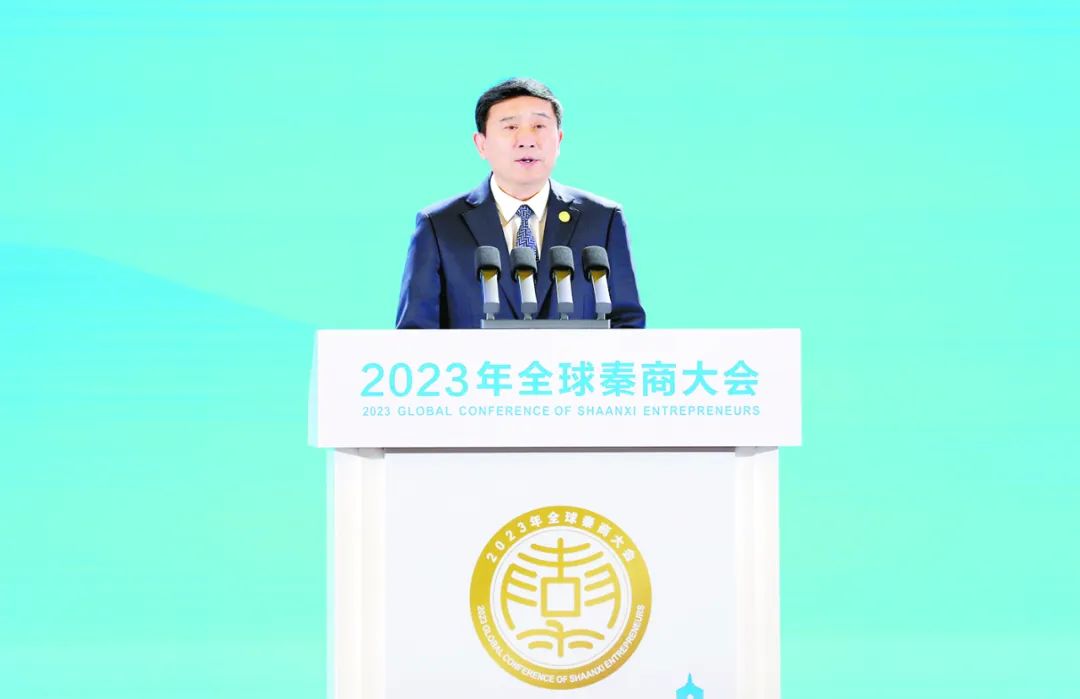 陜煤集團(tuán)黨委書記、董事長(zhǎng)張文琪在2023年全球秦商大會(huì)開幕式上發(fā)言。
