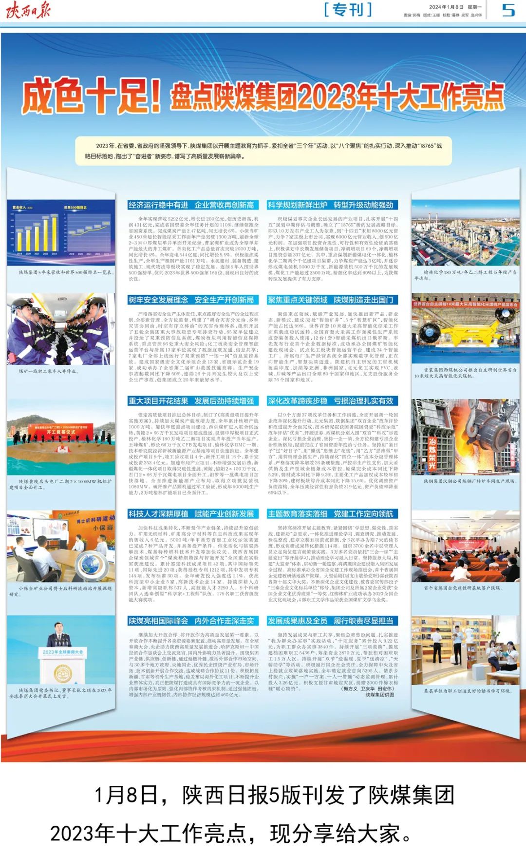 2023年,在省委、省政府的堅(jiān)強(qiáng)領(lǐng)導(dǎo)下,陜煤集團(tuán)以開展主題教育為抓手,緊扣全省“三個(gè)年”活動(dòng),以“八個(gè)聚焦”的扎實(shí)行動(dòng),深入推動(dòng)“18765”戰(zhàn)略目標(biāo)落地,跑出了“奮進(jìn)者”新姿態(tài),譜寫了高質(zhì)量發(fā)展嶄新篇章。