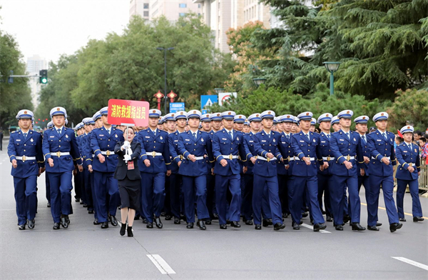 消防救援指戰(zhàn)員代表參加升國旗儀式。