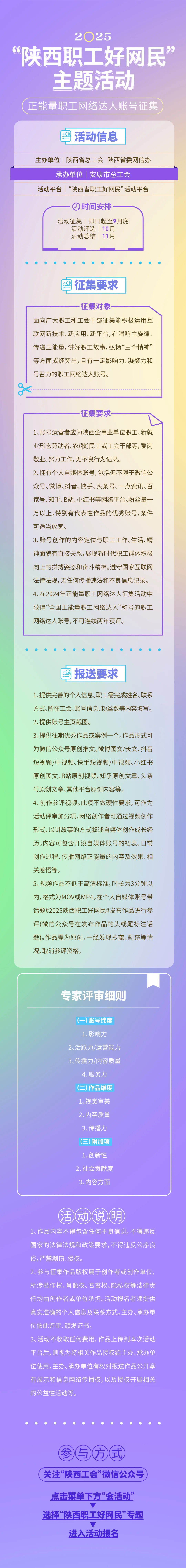 2025年“陜西職工好網(wǎng)民”正能量職工網(wǎng)絡達人賬號征集