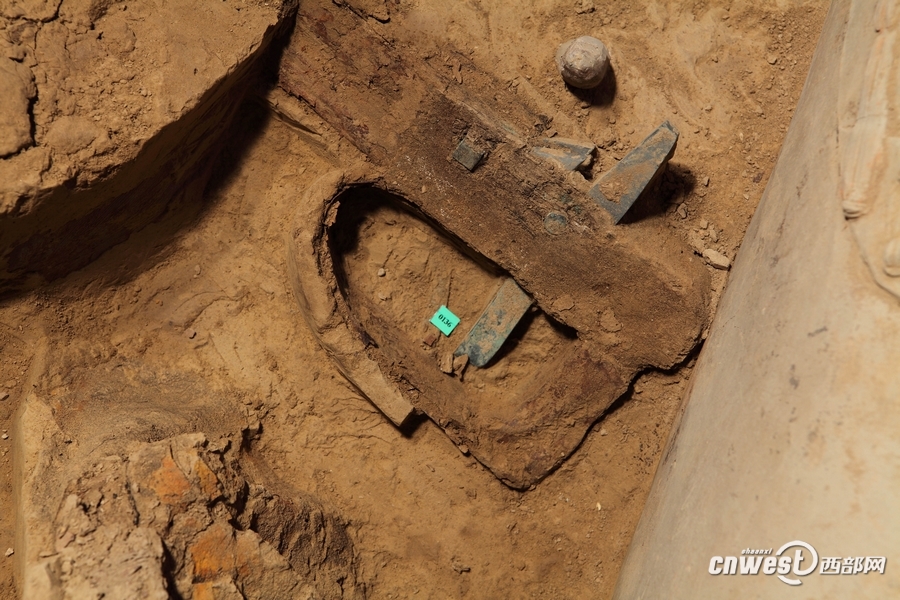 秦俑考古首現(xiàn)完整弓弩 弓弦清晰可見