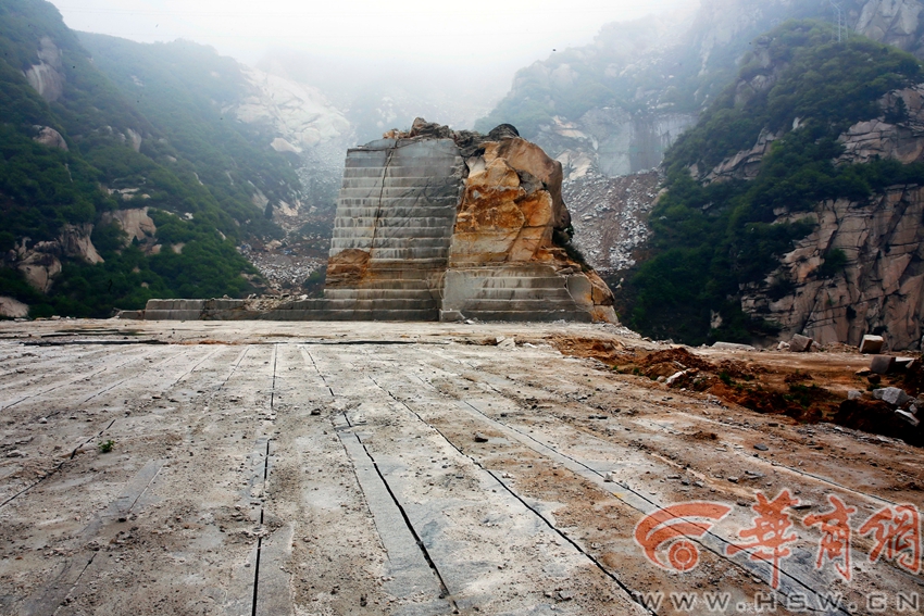 在華陰市大敷峪內(nèi)一個山頭已經(jīng)被削平。留下光禿禿的平面。 記者 鄧小衛(wèi) 文/圖