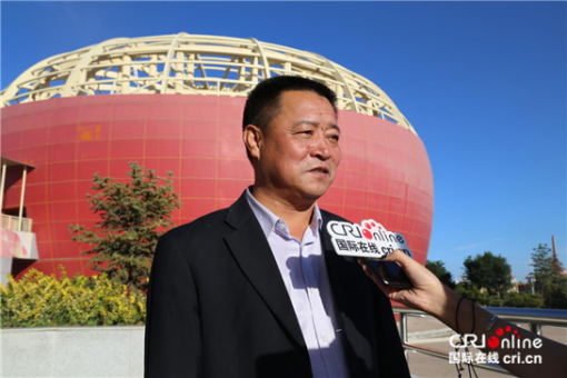 延安市洛川縣蘋(píng)果產(chǎn)業(yè)園區(qū)管理處主任安金海接受?chē)?guó)際在線陜西頻道采訪(攝影 劉君慧) 國(guó)際在線陜西頻道報(bào)道(吳宇婷 劉君慧):“我們種的蘋(píng)果個(gè)兒大,一個(gè)個(gè)紅……