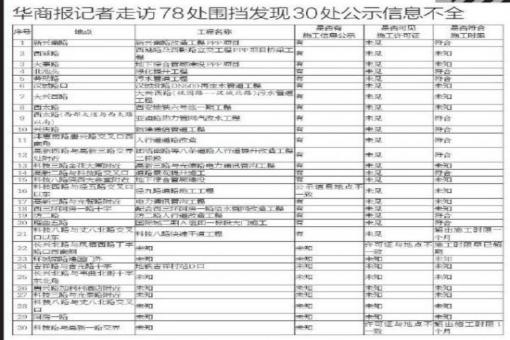 78處圍擋類型: 1、地鐵:21處 2、供熱:13處 3、自來水:2處 4、人行道改造:4處 5、污水管道:4處 6、電力通信:4處 7、PPP項目:4處 8、市政改造:8處 9、天……