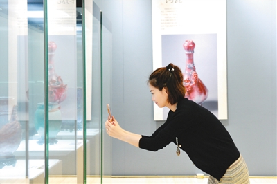 圖為一位觀眾在拍攝國家級非物質文化遺產代表性傳承人任星航的鈞瓷作品。iuN安康新聞網