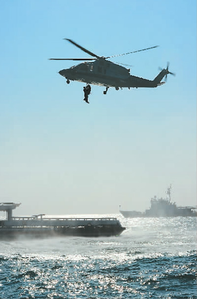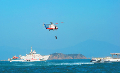 12月19日,海南海事局和南海救助局、南海第一救助飛行隊在海南三亞以南附近海域開展首次?章(lián)合巡航。此次巡航旨在整合海事巡航執(zhí)法力量和專業(yè)救助力量,提升專業(yè)救助飛行力量使用效能和海事巡航執(zhí)法現(xiàn)代化水平。圖為參加聯(lián)合巡航的直升機進行救援演練。YFr安康新聞網(wǎng)