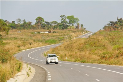 驅(qū)車駛出布拉柴維爾,剛果盆地遼闊的草原便映入眼簾。汽車很快駛上寬闊平坦的雙向四車道公路,這便是剛果(布)國家一號公路。