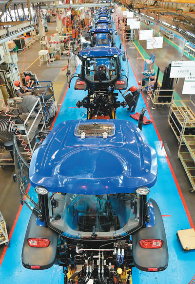 | 圖為位于山東濰坊的雷沃重工阿波斯拖拉機總裝車間的生產(chǎn)線。黨的十九大召開,明確以供給側(cè)結(jié)構(gòu)性改革為主線,推動經(jīng)濟(jì)發(fā)展質(zhì)量變革、效率變革、動力變革,提高全要素生產(chǎn)率。 |