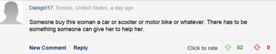 美國波士頓的網(wǎng)友danigiri17寫道:“誰來給她買輛車,或者至少買個(gè)小摩托車之類的?隙ㄓ腥四軌驇椭!
