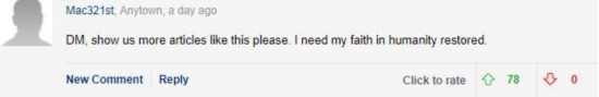 網(wǎng)友Mac321st:“請(qǐng)多寫些這樣的報(bào)道。他們的故事讓我重拾對(duì)人性的信心!