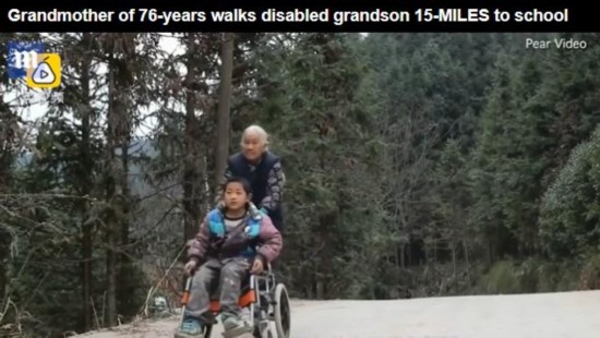 英國《每日郵報(bào)》1月22日發(fā)表文章,關(guān)注中國廣西76歲老太史玉英的感人故事。老人每天都會(huì)步行24公里的路,用一把破舊的輪椅推著患腦癱的孫子上學(xué)。報(bào)道稱,她“4年如一日,風(fēng)雨無阻,意志堅(jiān)強(qiáng)!
