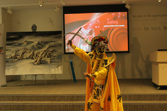 現(xiàn)場(chǎng)表演國(guó)粹藝術(shù)京劇變臉(攝影 盛楚宜)