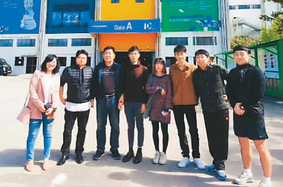 | 沈惟強(右三)和老師與同學(xué)們參加第十屆清州國際藝術(shù)展時的合影。 |