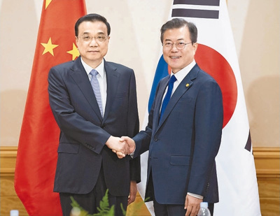 李克強(qiáng)首先轉(zhuǎn)達(dá)習(xí)近平主席對文在寅總統(tǒng)的親切問候。李克強(qiáng)表示,中韓是友好近鄰和重要合作伙伴。中方愿同韓方加強(qiáng)戰(zhàn)略溝通,夯實(shí)政治互信,深化互利合作,推動地區(qū)形勢進(jìn)一步緩和,希韓方繼續(xù)妥善處理好“薩德”問題。雙方應(yīng)加強(qiáng)發(fā)展戰(zhàn)略對接,深化各領(lǐng)域合作,擴(kuò)大互利共贏。