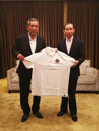 龍宇翔向披尼贈送昆侖鴻星冰球隊球衣。