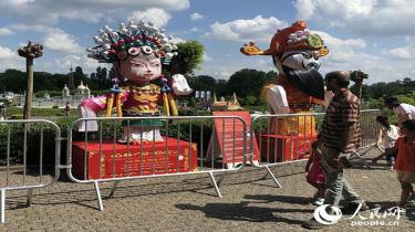 中國彩燈吸引了游園者的目光。記者任彥攝 人民網(wǎng)布魯塞爾6月5日電 (記者 任彥)不遠(yuǎn)處是埃菲爾鐵塔和大本鐘微縮景觀,眼前是京劇臉譜、青花瓷……