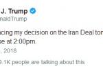 特朗普在推特上表示,即將宣布對(duì)伊核協(xié)議的決定。 人民網(wǎng)北京5月8日電 (姚麗娟)美國(guó)總統(tǒng)特朗普8日凌晨宣布,他將于8日下午2時(shí)(北京時(shí)間9日上……