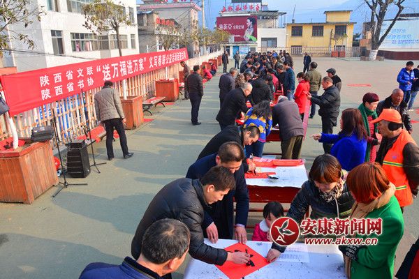 安康新聞網(wǎng)訊(通訊員 吳磊 郎海俠)1月23日,由陜西省文聯(lián)、陜西省書協(xié)組織的“送萬福進萬家”義寫春聯(lián)公益活動在縣體育場舉行,省書協(xié)副主席史星文、吳福春、劉偉群等數(shù)十位省、市書法家參加義寫活動。縣委常委、宣傳部長魯延福出席活動并致辭。