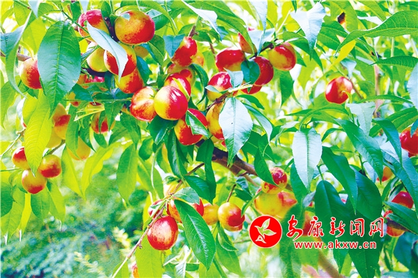 桃園主人向我們介紹,桃園里有十幾個(gè)品種的桃子,從五月下旬開(kāi)始,一直到八月中秋陸續(xù)成熟。目前,油桃正值采摘期,已采摘5000余公斤,果園里黃桃、水蜜桃也已成熟,預(yù)計(jì)年產(chǎn)量1.5萬(wàn)公斤左右,這也將帶來(lái)一筆不小的收入。