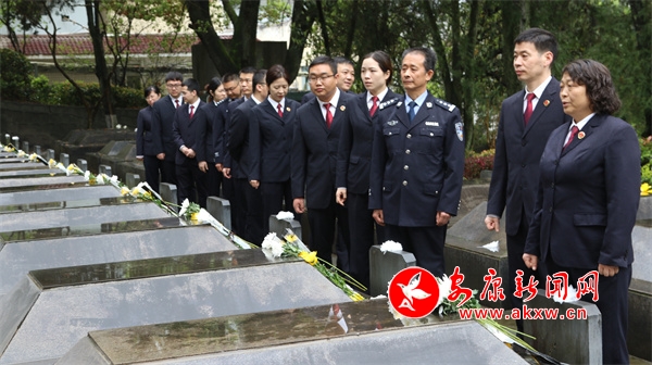 烈士陵園里,蒼松翠柏掩映著一塊塊莊嚴(yán)肅穆的墓碑,每一塊墓碑都記錄著一位烈士的英勇事跡和無私奉獻(xiàn)。全體干警整齊列隊(duì),肅立在烈士墓前,敬獻(xiàn)花圈,鞠躬默哀,悼念長眠在這方熱土的烈士忠魂,寄托無盡的哀思和敬仰。
