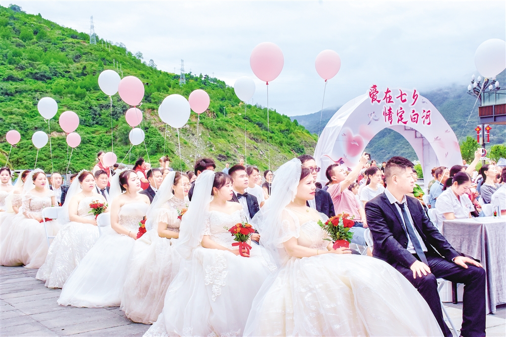 8月29日上午,“愛在七夕·情定白河”2025年白河縣新時代文明實踐集體婚禮主題活動在河街寶石文化廣場浪漫啟幕。來自各行各業(yè)的8對“珍珠婚”夫婦、8對新人齊聚一堂,通過分享婚姻保鮮秘訣、頒發(fā)結婚證、簽訂承諾書、開展婚姻家庭輔導等簡約而莊重的儀式,在各界代表和親朋好友的見證祝福下,開啟幸福婚姻新篇章,用實際行動踐行婚事新辦、喜事儉辦的文明新風尚。(紀道婭 攝)ASZ安康新聞網(wǎng)