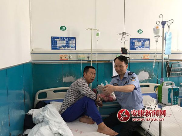 病床前的暖心扶貧。該圖為白河交警大隊(duì)民警帶著水果入院看望低保貧困戶,并熱情耐心向其講解健康扶貧政策,鼓勵殘疾單身老人挺過難關(guān)堅(jiān)定生活信心。攝影 楊鳴……