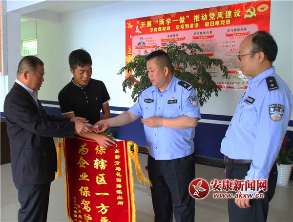 安康新聞網(wǎng)訊(記者 張喬 通訊員 羅延炎 )5月8日上午,在高新分局花園路派出所的大廳里,來自陜建安康城區(qū)環(huán)城干道江北段建設(shè)工程項(xiàng)目部的負(fù)責(zé)人為感謝花園路派出所民警認(rèn)真的工作態(tài)度和為企業(yè)保駕護(hù)航精神,特送來一面書寫“保轄區(qū)一方平安,為企業(yè)保駕護(hù)航”的錦旗,以表示對(duì)派出所民警工作的肯定和褒揚(yáng)。