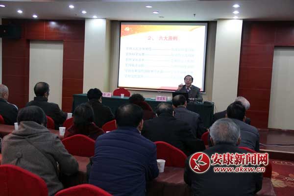 安康新聞網(wǎng)訊(通訊員 楊浩)為進(jìn)一步深入學(xué)習(xí)貫徹黨的十八屆五中全會(huì)精神,11月25日上午,漢濱區(qū)委老干局組織全區(qū)離退休干部、各單位老干專(zhuān)干、老干局全體機(jī)關(guān)干部共計(jì)200余人,在安康金都國(guó)貿(mào)四樓二號(hào)會(huì)議廳舉辦老干部學(xué)習(xí)黨的十八屆五中全會(huì)精神報(bào)告會(huì),安康市理論宣講團(tuán)副團(tuán)長(zhǎng)趙富振同志為全區(qū)老干部做黨的十八屆五中全會(huì)精神輔導(dǎo)報(bào)告。