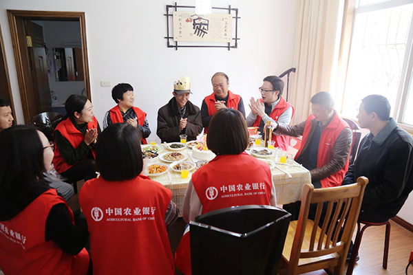 生日當天,漢濱農行副行長董曉春代表領導班子攜部分青年員工,帶著對空巢老人的濃濃關愛和厚重的生日禮物,來到我的住室,陪我度過了一個頗具特殊社會意義的生日。幾位領導同我聊天,向我噓寒問暖。青年人給我洗衣拖地,替我做飯。一時間,住室里如春風柔沐,暖日曛曛,彌揚著濃濃的溫暖和愛意,給一個老人心里注入了非比一般的欣慰,驅盡了獨居生活的寂寞。他們的愛心給我送來一次最為幸福的生命享受。