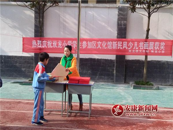 安康新聞網(wǎng)訊(通訊員 惠星 汪子文)11月20日上午,漢濱區(qū)文化館、雙龍鎮(zhèn)文化站、雙龍小學(xué)對入展?jié)h濱區(qū)文化館百花苑“社會主義新民風(fēng)”少兒書畫作品展的同學(xué)們在雙龍小學(xué)全校范圍內(nèi)進(jìn)行了表彰,并向參展小同學(xué)們頒發(fā)獲獎證書和繪畫工具,鼓勵孩子們努力學(xué)習(xí),創(chuàng)作出更優(yōu)秀的書畫作品。
