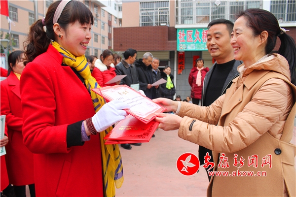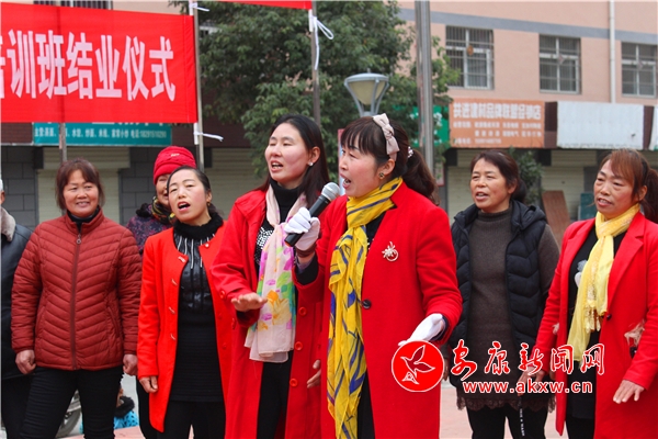 當天的氣溫驟降,盡管天空中飄著零星雨絲,但仍擋不住學員們演唱“花鼓子”的熱情。在社區(qū)的百姓大舞臺上,鄧小娣、曹善蓮等學員爭先恐后上臺展示自己的學習成果,學員們每唱完一段花鼓子歌詞,田莊村鑼鼓隊的鑼鼓聲便鏗鏘有力響起來,臺上花鼓子悠揚動聽,臺下鑼鼓聲抑揚頓挫,雙方配合的十分默契;ü淖营毘硌萁Y束后,大家一起手挽手、高興地走上舞臺,開始表演對唱、合唱,他們聲情并茂、字正腔圓的表演把現(xiàn)場的氣氛一次次推向高潮,讓前來觀看演出的群眾如癡如醉。隨后,早陽鎮(zhèn)文化綜合服務站負責人為22名學員頒發(fā)了結業(yè)證書,漢濱區(qū)非物質(zhì)文化遺產(chǎn)保護中心的干部為早陽鎮(zhèn)3名傳承保護“非遺”工作先進個人頒發(fā)了榮譽證書。