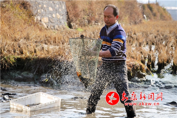 “一上午撈了100多公斤魚,收購價是8塊錢,能賣1600元。家里種了兩畝稻田,稻米、稻魚兩項加起來預(yù)計能收入5000元。”張遠(yuǎn)林說。