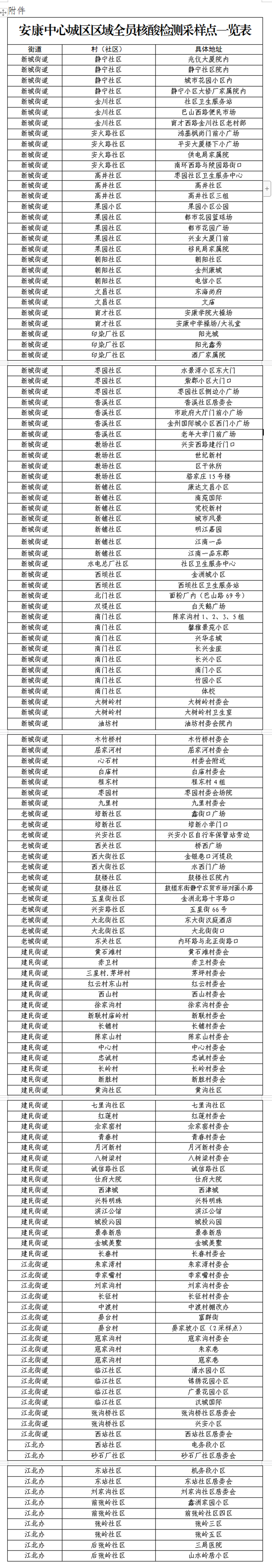 附件:安康中心城區(qū)區(qū)域全員核酸檢測采樣點一覽表