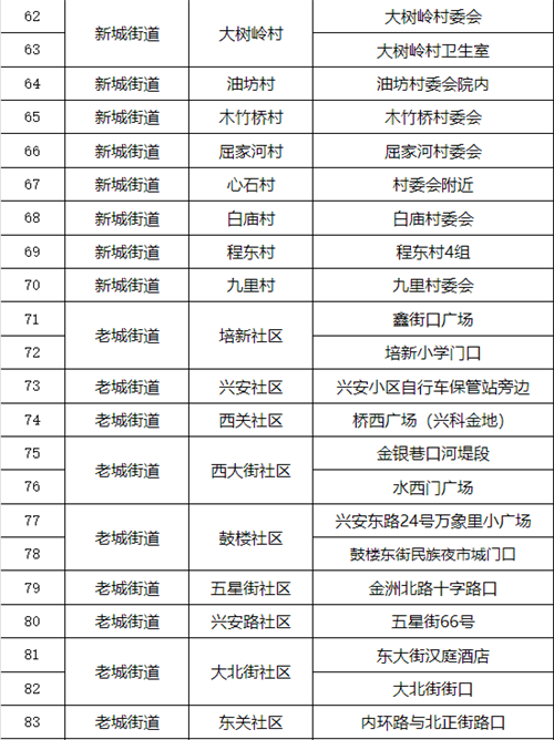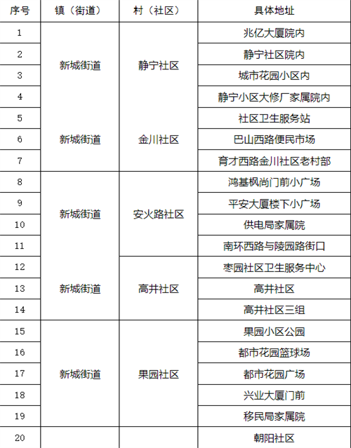 漢濱區(qū)中心城區(qū)全員核酸檢測采樣點一覽表