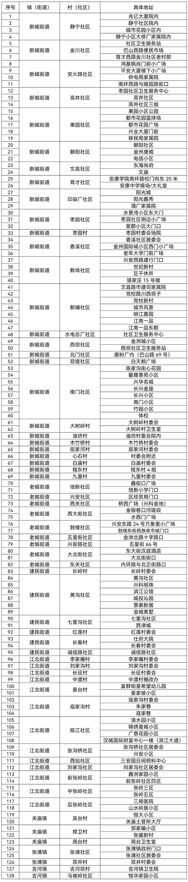 附件:漢濱區(qū)中心城區(qū)全員核酸檢測采樣點(diǎn)一覽表