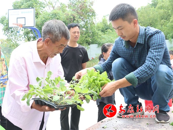 “白菜30株、花菜20株,拿好啊。”社區(qū)支部書記劉興文一邊說(shuō)著一邊把菜苗遞到吳芳手中。