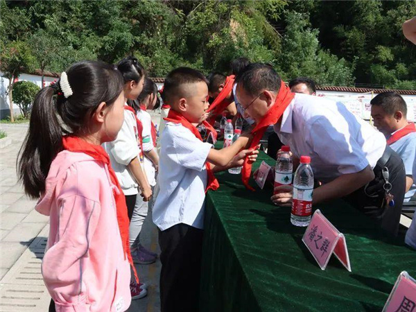 捐贈儀式上,少先隊員向各位嘉賓敬獻紅領巾。校長馮波向愛心企業(yè)、愛心人士對教育事業(yè)的大力支持表示衷心的感謝。
