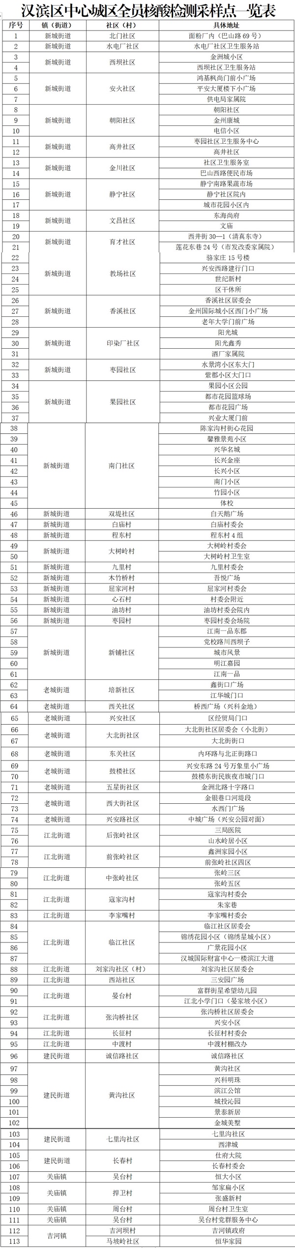附件:漢濱區(qū)中心城區(qū)全員核酸檢測(cè)采樣點(diǎn)一覽表Rhb安康新聞網(wǎng)