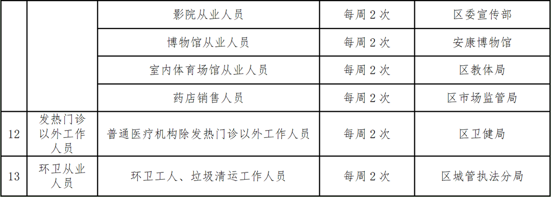 重點(diǎn)人群重點(diǎn)場(chǎng)所周期性核酸檢測(cè)一覽表
