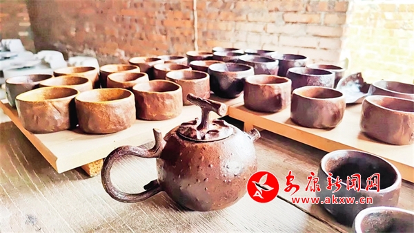 2014年,來顯軍回到老家,通過實地考察、取土測試、復建磚房、盤好土窯和購置實驗電窯后,致力于挖掘保護、傳承柴燒制陶技藝。來顯軍說,安康漢水陶歷史悠久,更是安康非物質文化遺產中的絢麗瑰寶,承載著安康厚重的歷史文化和父老鄉(xiāng)親難以割舍的土陶情懷。從最初的愛好,再到不斷的創(chuàng)新,普通的泥巴,通過采土、浸泡、過濾、沉淀、曬泥、發(fā)酵兩年時間,然后還有制胚、修坯等十幾道工序,再被送進他自建柴窯中不間斷煅燒26個小時,最終化土為器,打造成精致的陶藝作品。