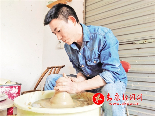 走進漢濱區(qū)石梯鎮(zhèn)葉溝村漢水陶藝工作室,琳瑯滿目的茶器、碗具、泥塑等大大小小的陶藝作品,都出自來顯軍之手。38歲的來顯軍看似有些內斂,卻很有內涵,他說,生活在農村,從小就喜歡玩泥巴,跟隨爺爺學習泥塑,用泥巴捏各種各樣的東西。就這樣,泥巴在他手里玩活了。