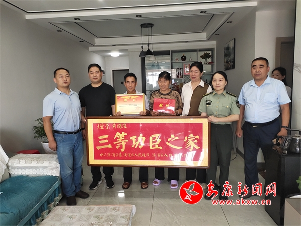 “感謝你們?yōu)閲?guó)防建設(shè)的大力支持和默默付出,也感謝你們?yōu)椴筷?duì)培養(yǎng)了一名優(yōu)秀的士兵,一人立功、全家光榮,希望你們繼續(xù)做好兒子的堅(jiān)強(qiáng)后盾,讓孩子在部隊(duì)再立新功。”在現(xiàn)役軍人黃開波的家里,鎮(zhèn)領(lǐng)導(dǎo)把一面“三等功之家”的牌匾送到黃開波的父親黃朝德的手里時(shí)動(dòng)情地說(shuō)。