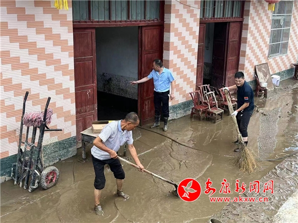 “小周呀,你休息會吧,全身都濕透了。”居民熊國強(qiáng)看著幫助清理淤泥滿頭大汗的鎮(zhèn)干部周文龍關(guān)心地說。