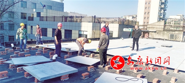 工人正在江北小區(qū)鋪設(shè)隔熱層