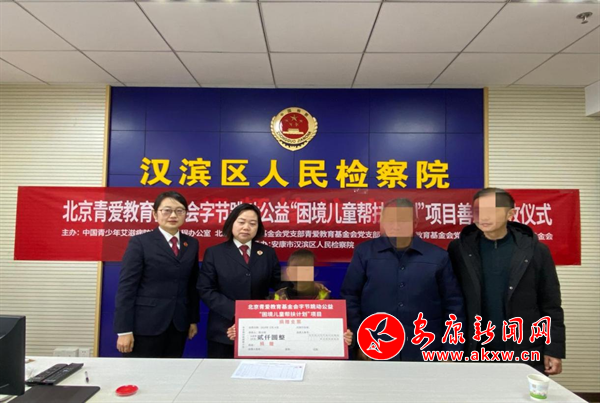 1月22日,漢濱區(qū)檢察院聯(lián)合北京青愛基金會對涉案困境兒童現(xiàn)場發(fā)放救助金2000元。
